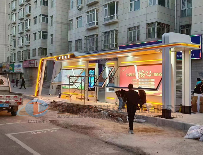 城市候車亭發(fā)貨安裝現(xiàn)場